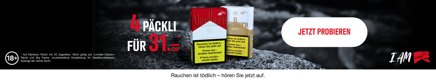 Du möchtest Zigaretten online in der Schweiz kaufen? In unserem Shop bist du nur ein paar Klicks von deiner Lieblingsmarke entfernt. Wir setzen auf kurze Lieferzeiten und Produktvielfalt. Läufst du fast jede Woche zum Kiosk und kaufst Einzelpackungen? Profitiere von unserer grossen Zigarettenauswahl, Lieferung innerhalb von 24 Stunden und ab einem Einkaufswert von CHF 160 von einer kostenlosen Lieferung.