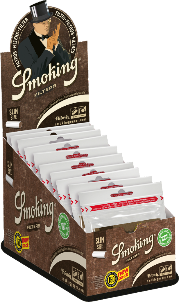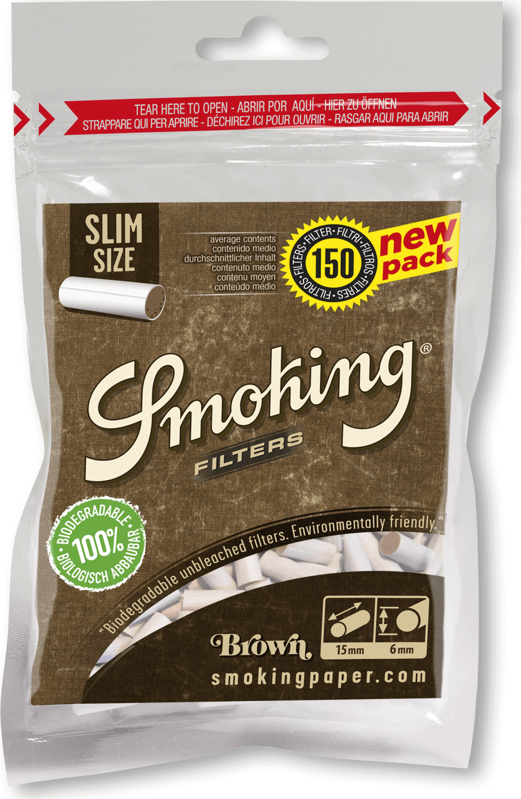 Smoking Slim Filter Bio Brown - 100% biologisch abbaubar. Wieder-verschliessbaren und reissfesten Beutel mit ca. 150 Stück Tips.
