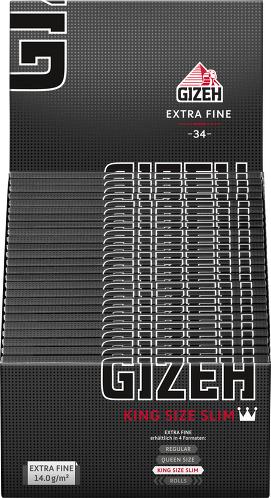 GIZEH BLACK King Size Slim sind extra feine, fast transparente Blättchen mit einem Flächengewicht von 14 g/m² und einer Gummierung aus natürlichem Gummiarabikum.