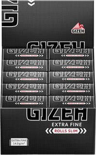 GIZEH BLACK Rolls Slim sind extra feine, fast transparente Blättchen mit einer Gummierung aus natürlichem Gummi Arabicum. Durch das Rolls-Format kann die jeweils gewünschte Länge individuell gewählt werden, die Breite entspricht dem King Size Slim-Format.